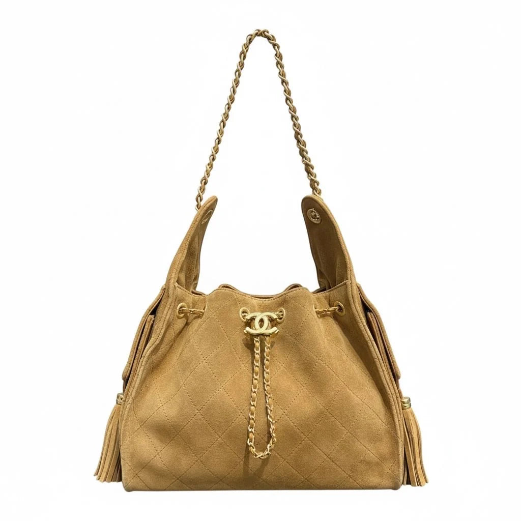 Chanel 25 hobo bag in velvet with antique gold hardware